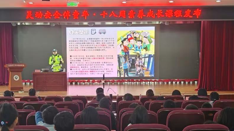 启动仪式后,北京市公安局交通管理总队朝阳交通支队东外大队窦雨洋警官为全体师生带来安全“第一课”。窦警官作为一线交管骨干,深耕校园交通安全宣教工作,以生动案例、实用知识为学生普及交通安全常识,为课程周拉开精彩序幕。